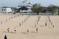 10月5日(木)、今日も早朝よりリレー選手候補の子どもたちが、バトンパスを繰り返し練習しています。